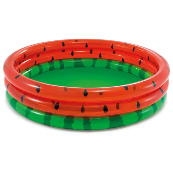 Надувний басейн INTEX "Кавун" — ідеальний варіант для літнього відпочинку дітей на подвір’ї чи дачі. Веселий дизайн у вигляді соковитого кавуна одразу сподобається малюкам, а також чудово доповнить будь-яку локацію.