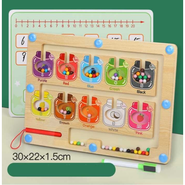 Дерев'яна магнітна гра C66171 (40) кульки, магнітна паличка, маркер “пиши-витирай”, шаблони для прикладів, в коробці