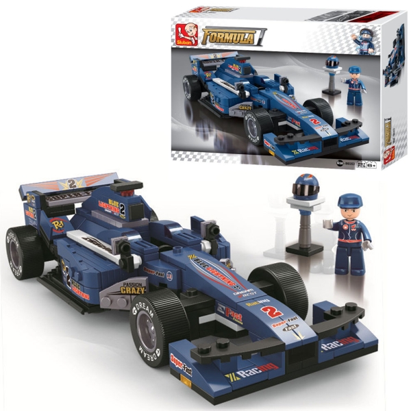 Конструктор Sluban "Синій гоночний автомобіль" підходить для дітей віком від 6 років. Він є частиною серії "Автогонки", яка включає багато інших моделей автомобілів для любителів швидкості та спортивних машин.