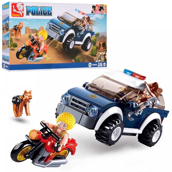 Модель поліцейського позашляховика: В комплекті є всі необхідні деталі для створення деталізованої моделі поліцейського автомобіля, який буде виглядати як настоящий. Дитина зможе зібрати його самостійно або разом з друзями та родиною.