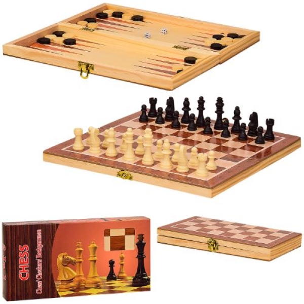 Шахи дерев'яні S3031 гра 3 в 1(шахи,шашки,нарди), у коробці 29.5*3.5*15 см, р-р дошки – 29.5*29.5*1.5 см