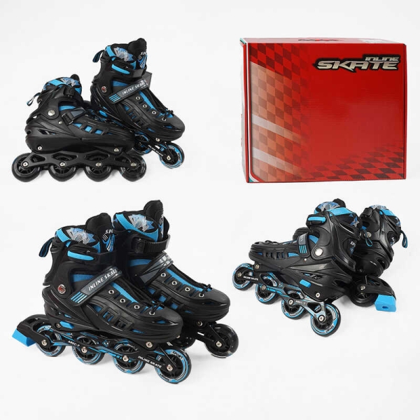 Ролики D-8305 L розмір 39-43 (6) колір СИНІЙ, колеса PU, d – 9 см, устілка 23-27 см, алюмінієва рама, гальма, переднє зі світлом, підшипник ABEC-7, в коробці