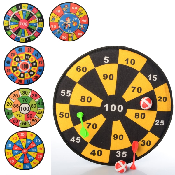 Дартс M 3388 36см, на липучці, дротики 2шт, м'ячики 2шт, 6від, в кульці 36-36-3 см
