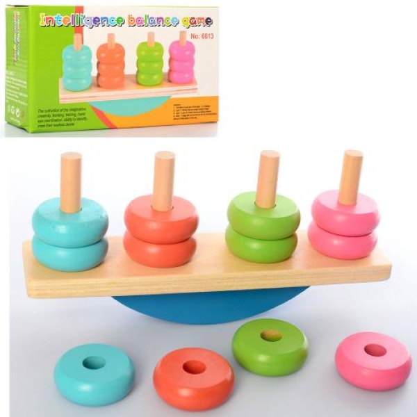 Дерев'яна іграшка Пірамідка MD 2277 баланс, кільця 12шт, в коробці, 22,5-11,5-6см