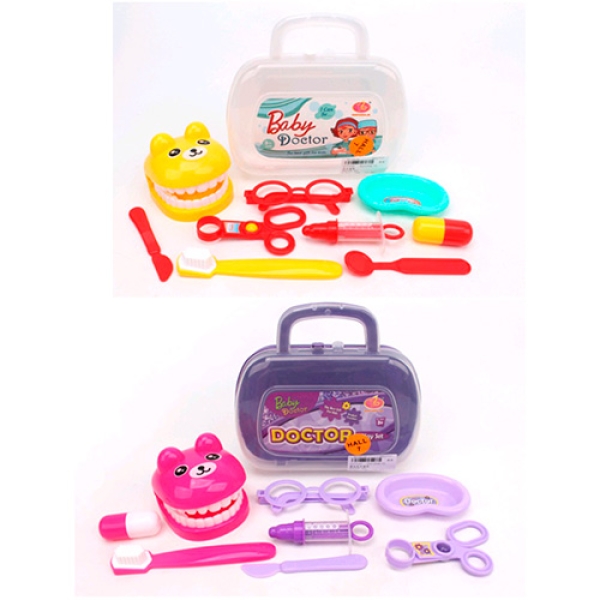 Доктор KJ1354A-1654A-10 стоматолог,щелепа,окуляри,мед.інструменти,2 кольори,в валізі,19-17-5,5см
