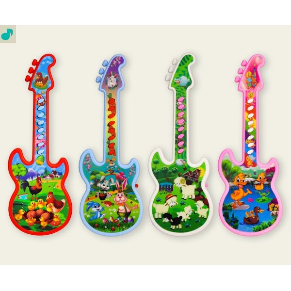 Гітара 8143 батар, пластик, 4 види мікс, 28 см, у пакеті 14*33 см