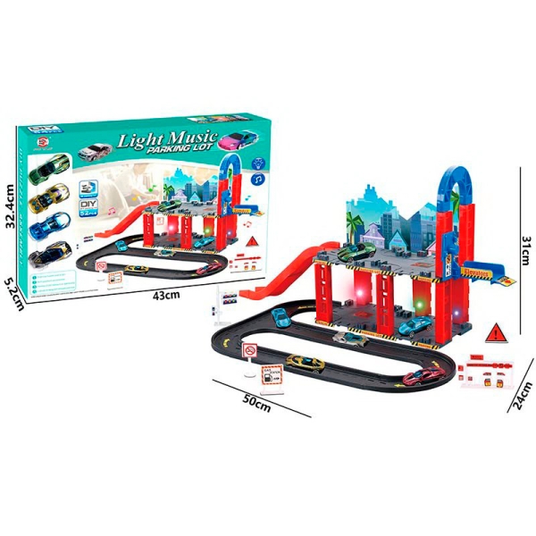 Гараж 0908-75A розмір 50-33-20см, машинка 4шт, звук, світло, на бат-ку, в коробці, 43-32,4-5см