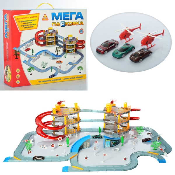 Гараж 922-12 3эт, машинка3шт, 7см, вертоліт2шт, 8см, дор.знаки, дерева, в кор-ке