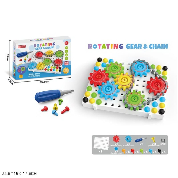 Ця унікальна гра дозволяє вашим дітям створювати різні конструкції та механізми, використовуючи різні елементи, що входять до набору. Вони можуть спорудити будь-що - від простих моделей до складних механізмів.