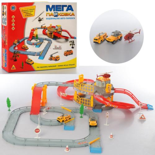 Гараж 922-15 2 поверхи, машинки, вертоліт, дерева, дорожні знаки, в коробці 41,5-36-7см