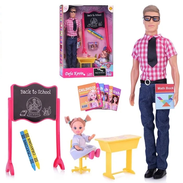 Игровой набор Кукла Defa Kevin Учитель и ученица на уроке, 30 см - бело-розовая рубашка, игровые предметы