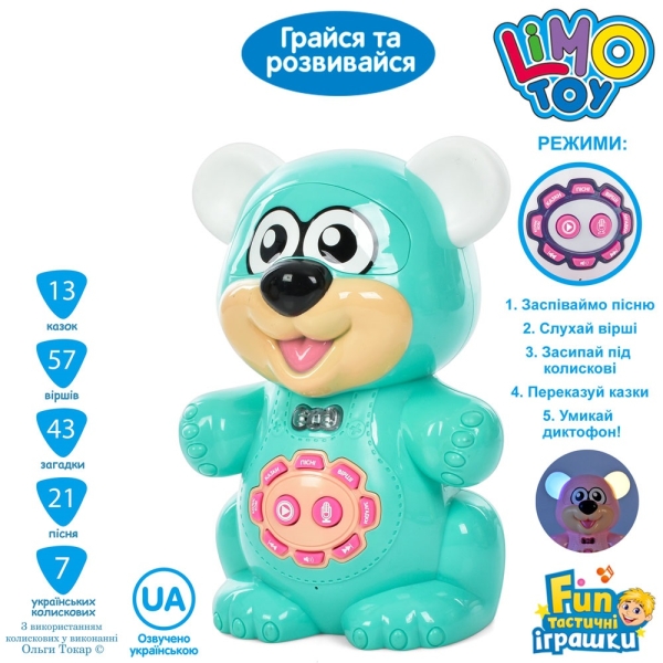 С "Говорящий зверек Медвежонок" каждый момент игры станет особенным и полезным для развития вашего малыша. Пусть веселые мелодии, сказки и загадки наполнят день радостью и обучением!