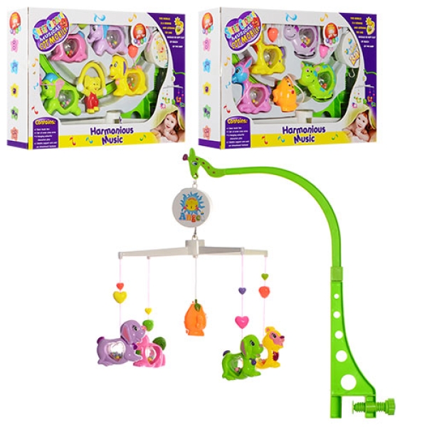 Карусель 1245 на ліжечко, заводна, музична, в коробці 38,5-24-6,5см