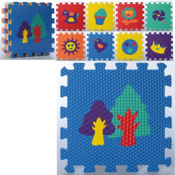Килимок Мозаїка MR 0357 EVA, підлогове покриття, природа / іграшки, масажний, 6 текстур, пазл, 9дет (9мм, 32-32см), в кульку 32-32-8,5см