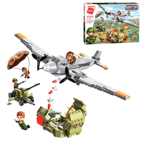 Конструктор Qman 21013 це унікальний набір для створення військового літака з гарматою та іншими елементами будівлі. У комплекті 557 деталей, які дозволять маленьким конструкторам виявити свою фантазію та створити справжній бойовий літак.