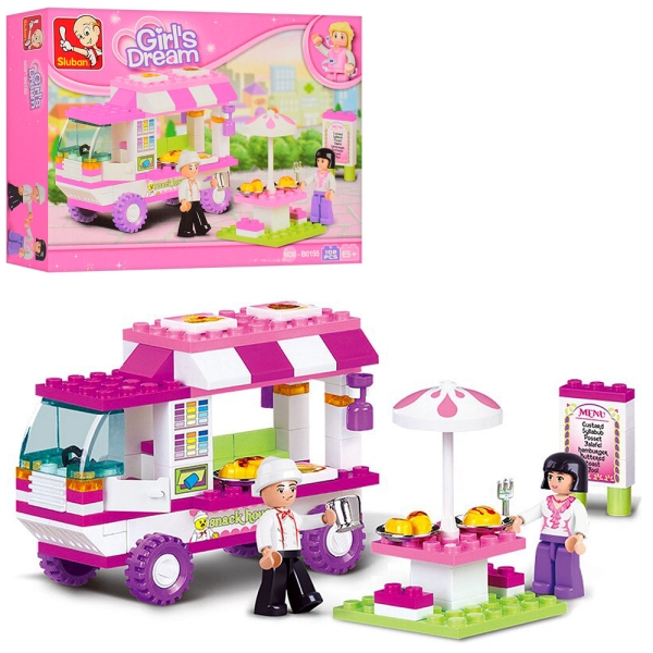 SLUBAN M38-B0155 - це ідеальний спосіб розважити і розвинути вашу дитину, спонукуючи її до конструктивної та креативної гри, де вона може створити своє власне захоплююче кафе на колесах.