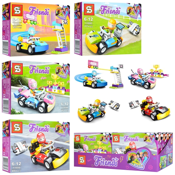 Конструктор SY1188 FRN: гоночна машинка, фігурка, від 75 дет, кор, 8шт (4 види) в дисплеї 37-18-14см