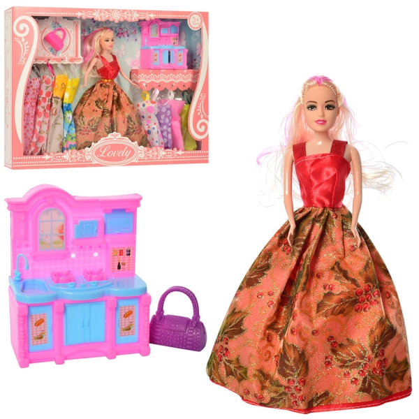 Кукла с нарядом 1035A-4: платья, мебель и аксессуары