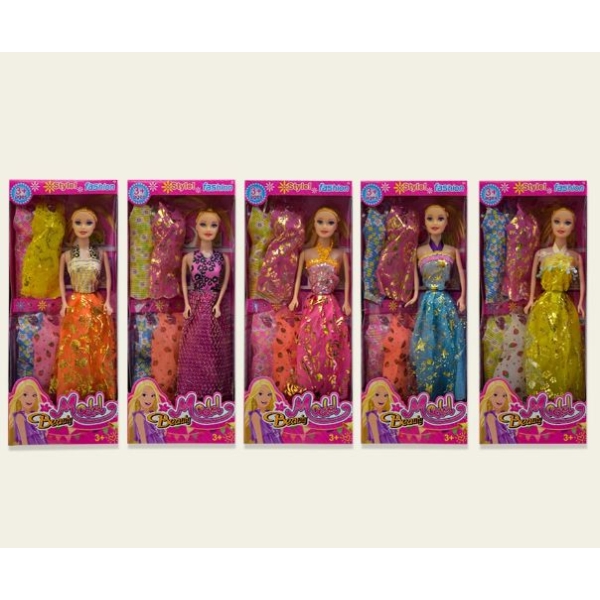 Лялька 5533A-3 (144шт/2) 5 видів, з набором суконь, у коробці 32, 5*4*13см