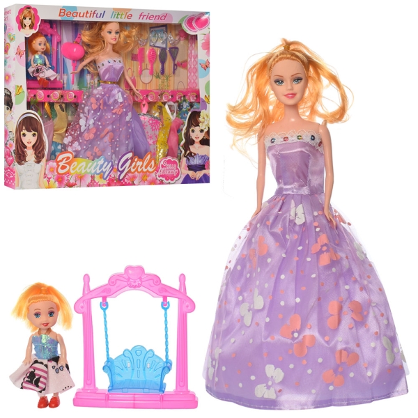 Лялька з нарядом R821 27см, дочка 10см, сукні, аксесуари, мікс видів, в коробці, 42-32,5-5см