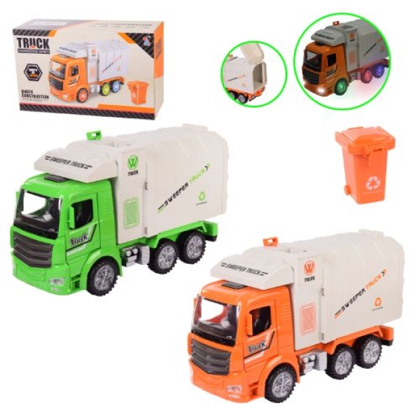 Дитячий іграшковий сміттєвоз на радіокеруванні стане прекрасним доповненням до автопарку юного автолюбителя. З такою іграшкою дитина зможе придумати масу сюжетів для гри і утілити їх в життя. Машина їздить вперед, назад, вліво, управо. Оснащена світловими і звуковими ефектами.