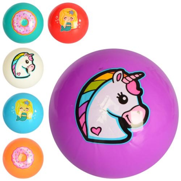 М'яч дитячий MS 2654 (120шт) 9 дюймів,малюнок,ПВХ,60г,3 види(русалка,єдиноріг,пончик),6 кольорів