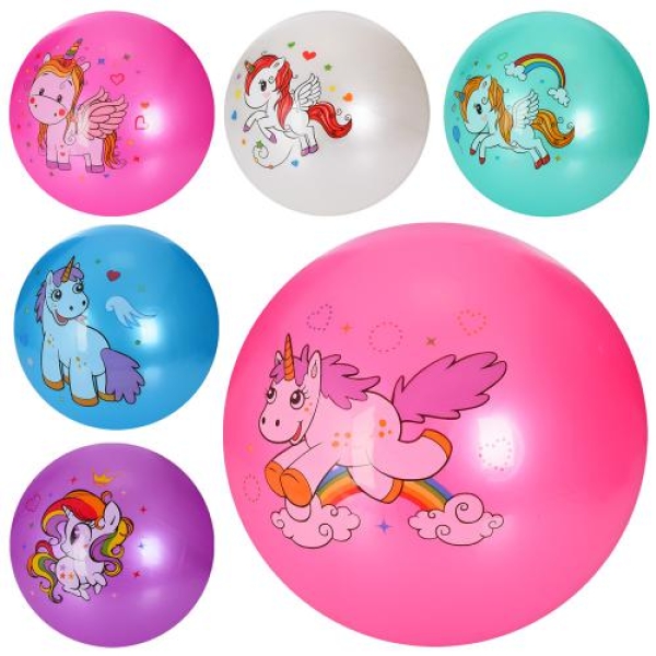 М'яч дитячий MS 3507 (120шт) 9 дюймів, малюнок(єдиноріг), 60г, 6 кольорів, 6 видів