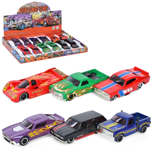 Машина 6664-12D (8см) метал, 6 видів, 12шт в дисплеї 29,5-20-3,5см