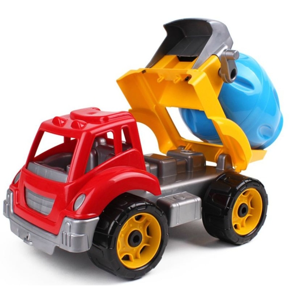 Яскрава, приваблива, функціональна машинка. З нею захоплююче грати і вдома, і на вулиці у пісочниці. Пластик стійкий до впливу факторів довкілля – дощу, снігу, вітру, низьких температур. Барабан машинки можна крутити.