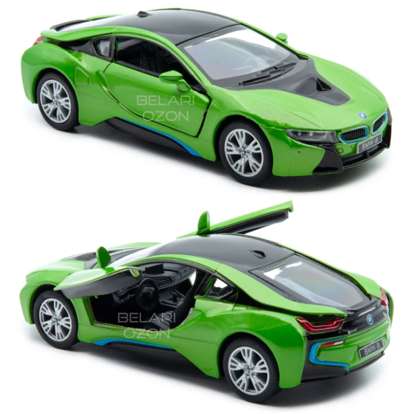 Машинка металлическая Kinsmart 1:36 BMW i8 KT5379WA инерционная, цвет Зеленый