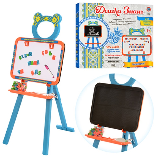 Мольберт 0703 UK: двосторонній, дошка 45x31см, магнітні літери та цифри, крейда, губка, маркер.