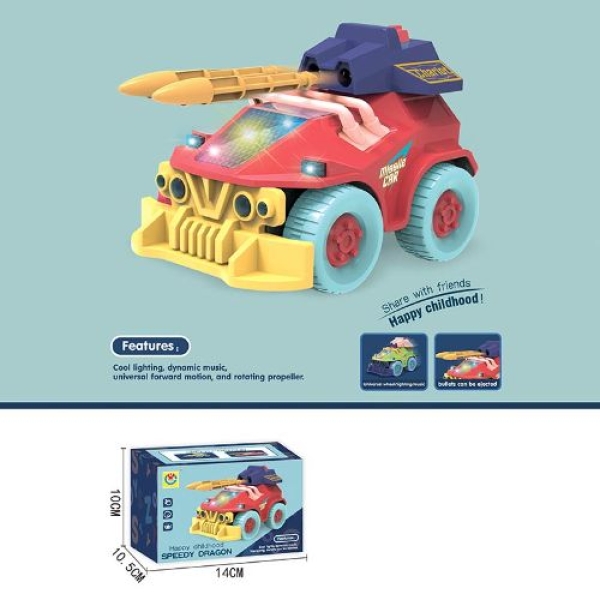 Муз. військова машина 2273 з освітленням і звуковими ефектами, стріляє снарядами, відштовхується від проблем, у коробці розміром 14x10,5x10 см