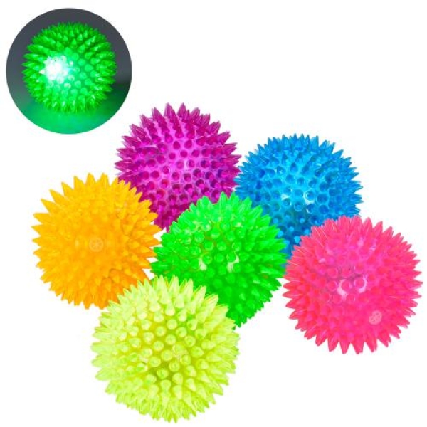Мяч массажный MS 1137-3 (8,5см), пищалка,(6 цветов), свет