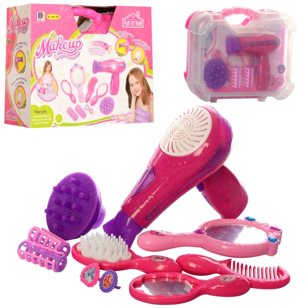 Набір аксесуарів 661-602 фен, гребінець, бігуді, в чемоді звук, світло, на бат-ці, в кор-ці 33-26-12 см