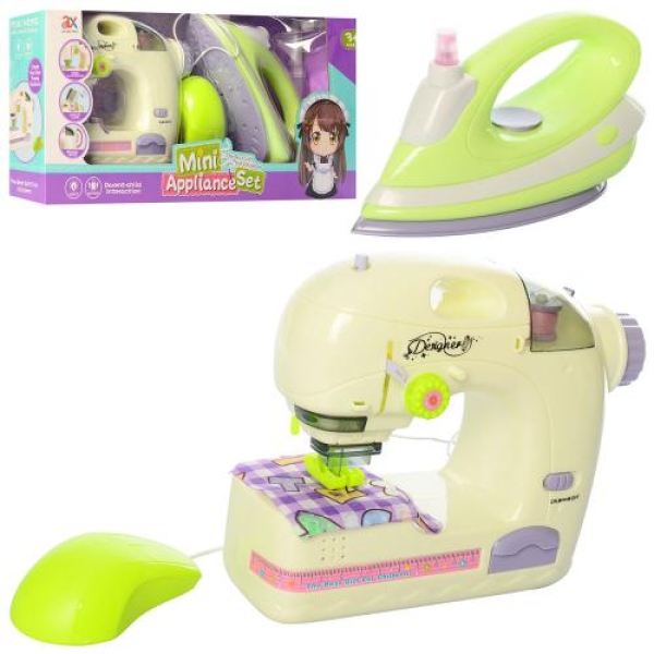 праска 22см, бризкає водою, швейна машинка 20см-шиє, керування педаллю, звук, світло, на батарейці