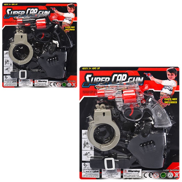 Набір поліцейського 138-9-10: пістолет-на пістона, наручники, кобура (2 види), на аркуші 20-24-3см