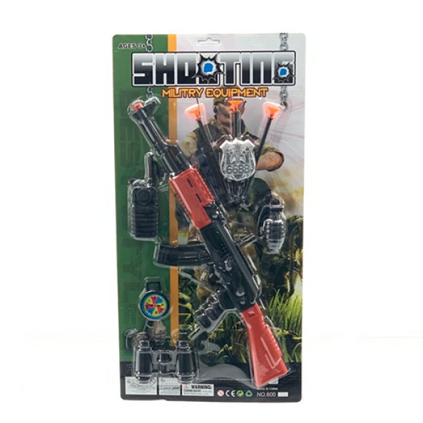 Набір зі зброєю 180-3: автомат 47см, рація, бінокль, кулі-присоски (3шт), на листі 57x28.5x4см