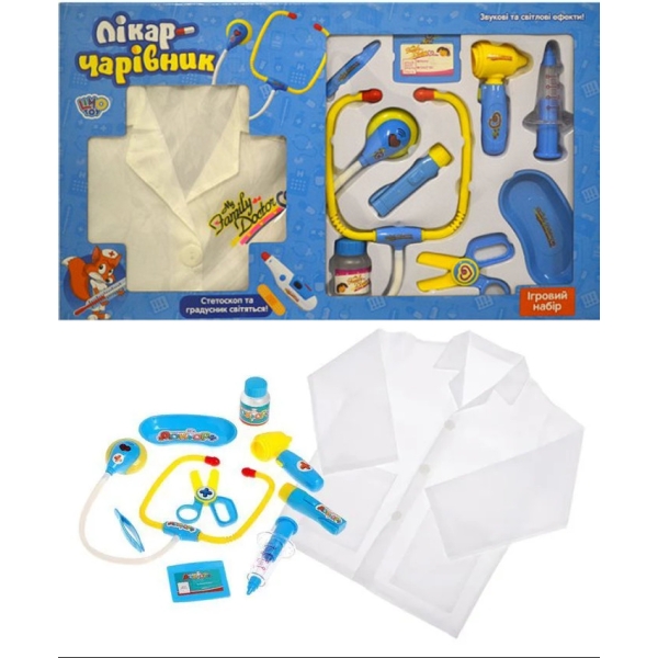 Маленькому медику нужны свои инструменты. С набором врача у малыша будет все необходимое, чтобы лечить кукол и плюшевых зверей. Разнообразные предметы сделают знакомство с профессией врача интересным, а яркие эффекты добавят игре реалистичности. У стетоскопа светится лампочка, а само устройство воспроизводит звуки сердцебиения.