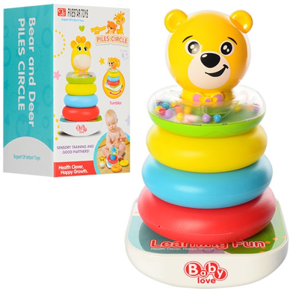 Пірамідка FS-35785 неваляшка,кільця4шт(1шт-брязкальце),2вид(ведмедик,жираф),в кор 13,5-23-13см