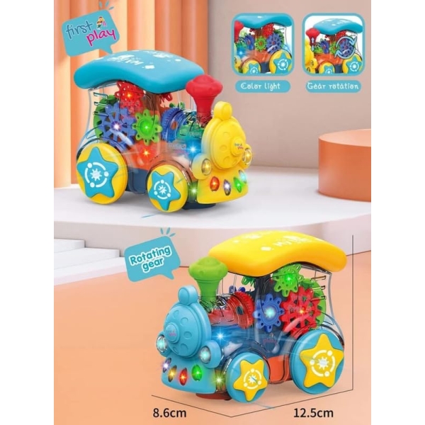 Игрушки для детей от 3 лет, отлично подойдут в подарок ребенку. Детская машинка паровозик с шестернями. Благодаря тому, что игрушка прозрачная, ребенку открывается удивительная структура машинки, что позволяет наблюдать за вращающимися шестеренками. Паровозик движется во всех направлениях, имеет световые и звуковые эффекты. Батарейки (3хАА1.5В) в комплект не входят.