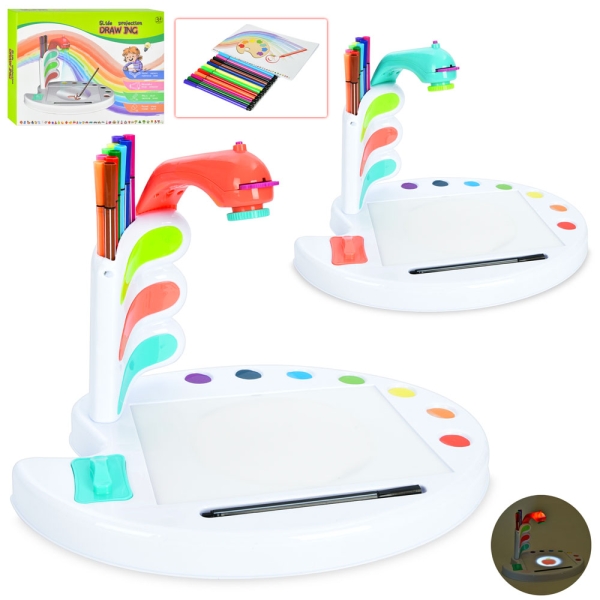 Проектор 563-1B (18шт) 37-24см, фломастери 12 шт, слайди, 2 кольори, світло, на бат-ці, в кор-ці, 37-28-6см