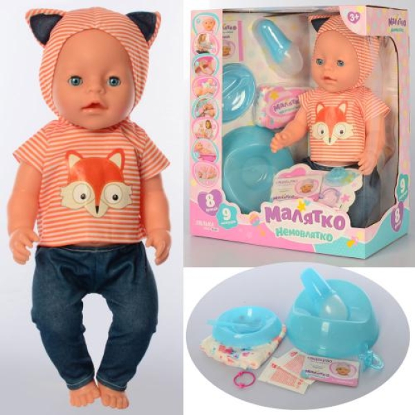 Пупс BL037P-S-UA 42см, п'є-писає, горщик, пляшечка, соска, підгузник, посуд, резиночка, каша 2шт
