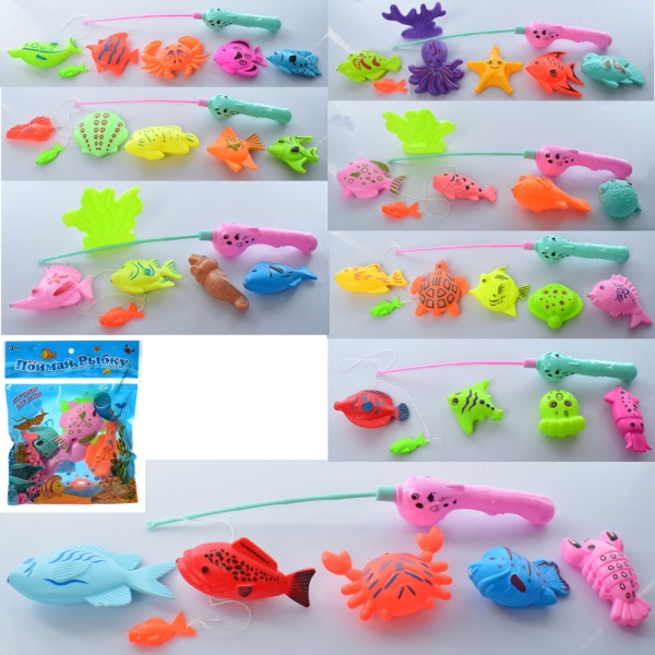 Риболовля 2018-37-8-9-40-1-2-3-4 магнітна, 1 вудка, морські мешканці 5шт, 8 видів, в кульку 17-21-3см