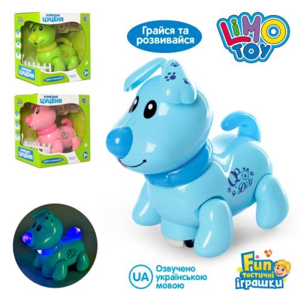 Собака EM 070 A муз (укр), світло, їздить, ворушить головою і хвостом, 3 кольори, на бат-ке, в кор-ке 20-18-13см