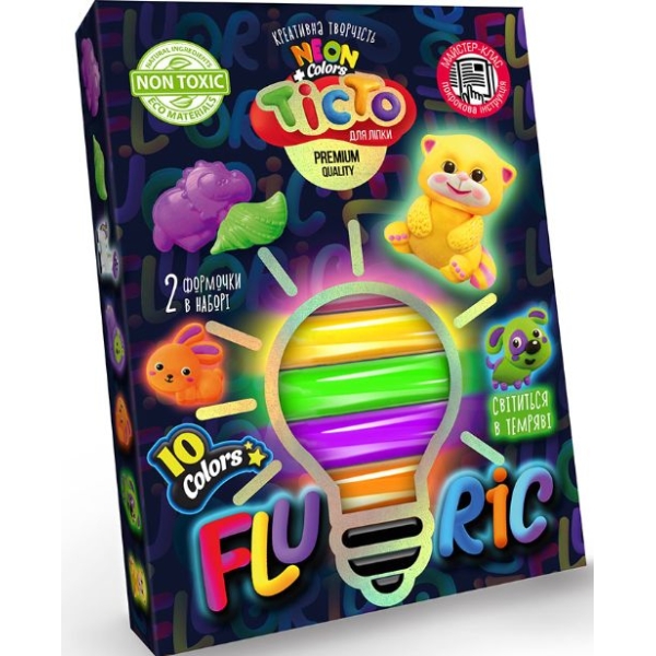 Тісто для ліплення «FLUORIC» це креативна творчість, що СВІТИТЬСЯ У ТЕМРЯВІ. Її унікальність полягає у складі самого матеріалу тесту.