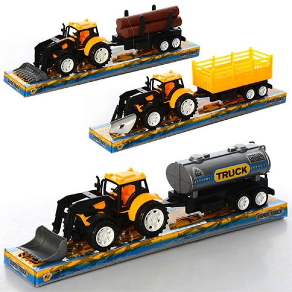 Трактор 9980-1-3-4 інерційний, бульдозер 16,5 см, з причепом, 3 види, в слюді 36,5-8-10см