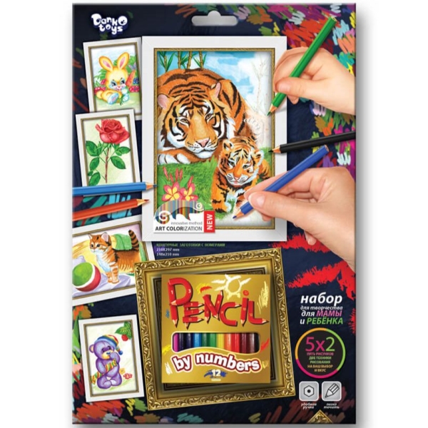 Творческий набор для раскрашивания карандашами по номерам — идеальный выбор для любителей искусства и творчества. Этот набор позволит вам создать настоящий шедевр, просто раскрашивая контурную заготовку, которая уже имеет нанесенный рисунок. Вам нужно лишь следовать цветовой схеме и раскрашивать соответствующие сектора с помощью цветных карандашей.