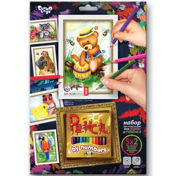 Творческий набор для раскрашивания карандашами по номерам — идеальный выбор для любителей искусства и творчества. Этот набор позволит вам создать настоящий шедевр, просто раскрашивая контурную заготовку, которая уже имеет нанесенный рисунок. Вам нужно лишь следовать цветовой схеме и раскрашивать соответствующие сектора с помощью цветных карандашей.