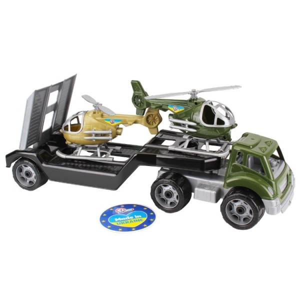 Набір "Військового транспорту" серії "Мілітарі" - це великий автовоз з 2-ма гелікоптерами. Вони поспішають на допомогу військом у небезпечних зонах. Транспорт у захисних кольорах: хакі, сірий, чорний та пісочний легко приховати на різній місцевості.