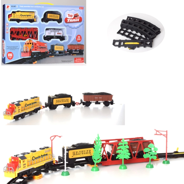 ЖД 3671ABC локомотив 20 см, вагон 2 шт, міст, звук, світло, 39 деталей, 3 види, на бат-ці, в кор-ці 55-32-6 см